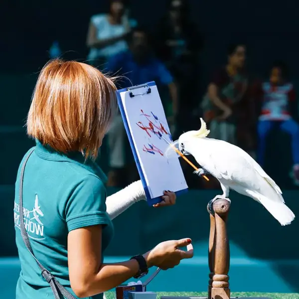 Answer: Yes, visitors are allowed to take photographs during the show. However, it’s important to be mindful of the birds and not use flash photography, as it can startle them. Also, do not take pictures of other people without asking them.