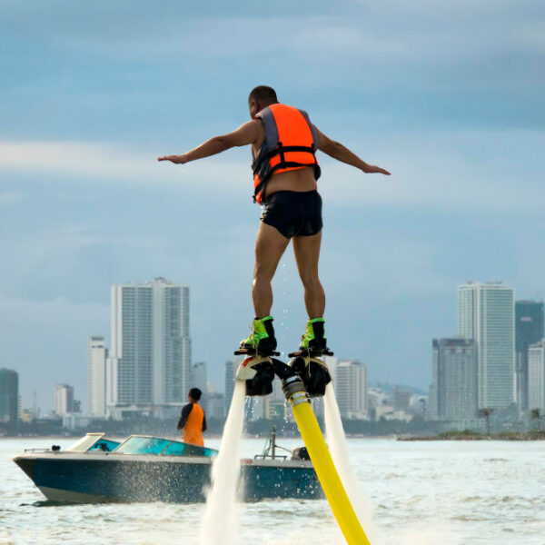 - Enjoy the thrills of a 15 or 30-minute flyboarding adventure