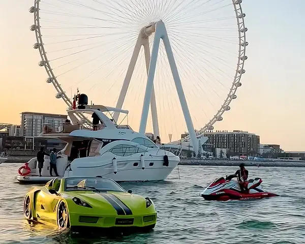 Why not try something interesting in Dubai, especially in water activities? Apart from jet skiing, you can try jet cars. These cars run on the road as well as in water. You will get instructions from the experts to ride the car safely. A 1-hour jet car package is available where three persons are allowed, and it costs around 1800 AED.